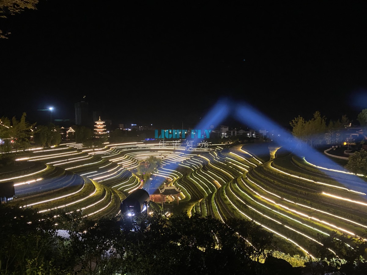 2021年10月份國慶佳節(jié),奢香古鎮(zhèn)為夜晚打造一場(chǎng)絢麗的山體投影激光秀與極光秀,配合防水戶外探照光束燈點(diǎn)亮整個(gè)古鎮(zhèn)梯田,佳諾燈光LIGHT FLY設(shè)計(jì)了2臺(tái)60W全彩防水動(dòng)畫激光燈與12臺(tái)防水戶外5000W探照燈,配合進(jìn)口穿山甲軟件實(shí)現(xiàn)了北極光激光效果,與各種動(dòng)態(tài)激光圖案,讓每位游客感受下激光視覺震撼,超強(qiáng)悍的光束效果點(diǎn)亮星空,無形中為古鎮(zhèn)夜晚做了一場(chǎng)絢麗廣告,美輪美奐的燈光秀得到了觀眾的一致喜歡,廣州佳諾燈光設(shè)備有限公司是一家十二年從事智能化演藝燈光研發(fā)、生產(chǎn)、銷售、服務(wù)于一體的國家高新技術(shù)企業(yè)。其自主品牌【佳諾燈光LIGHT FLY】產(chǎn)品涵蓋專業(yè)舞臺(tái)燈光、LED演藝照明,文旅亮化等領(lǐng)域,廣泛應(yīng)用于劇院、體育場(chǎng)館、電視臺(tái)及各種演出場(chǎng)所。