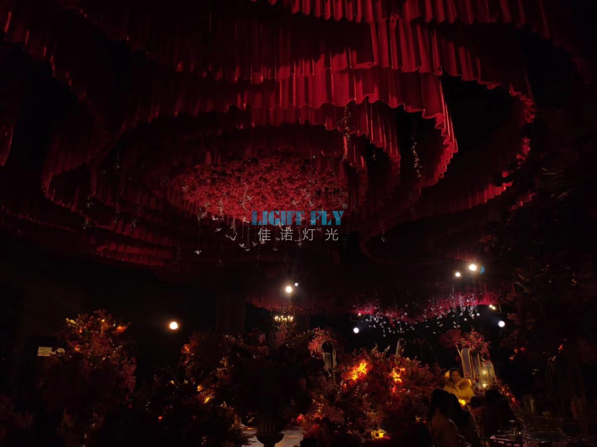 使用一些光束較小的燈,將這些燈光打在部分的花飾上,對(duì)場景的氛圍也會(huì)起到很好的效果。