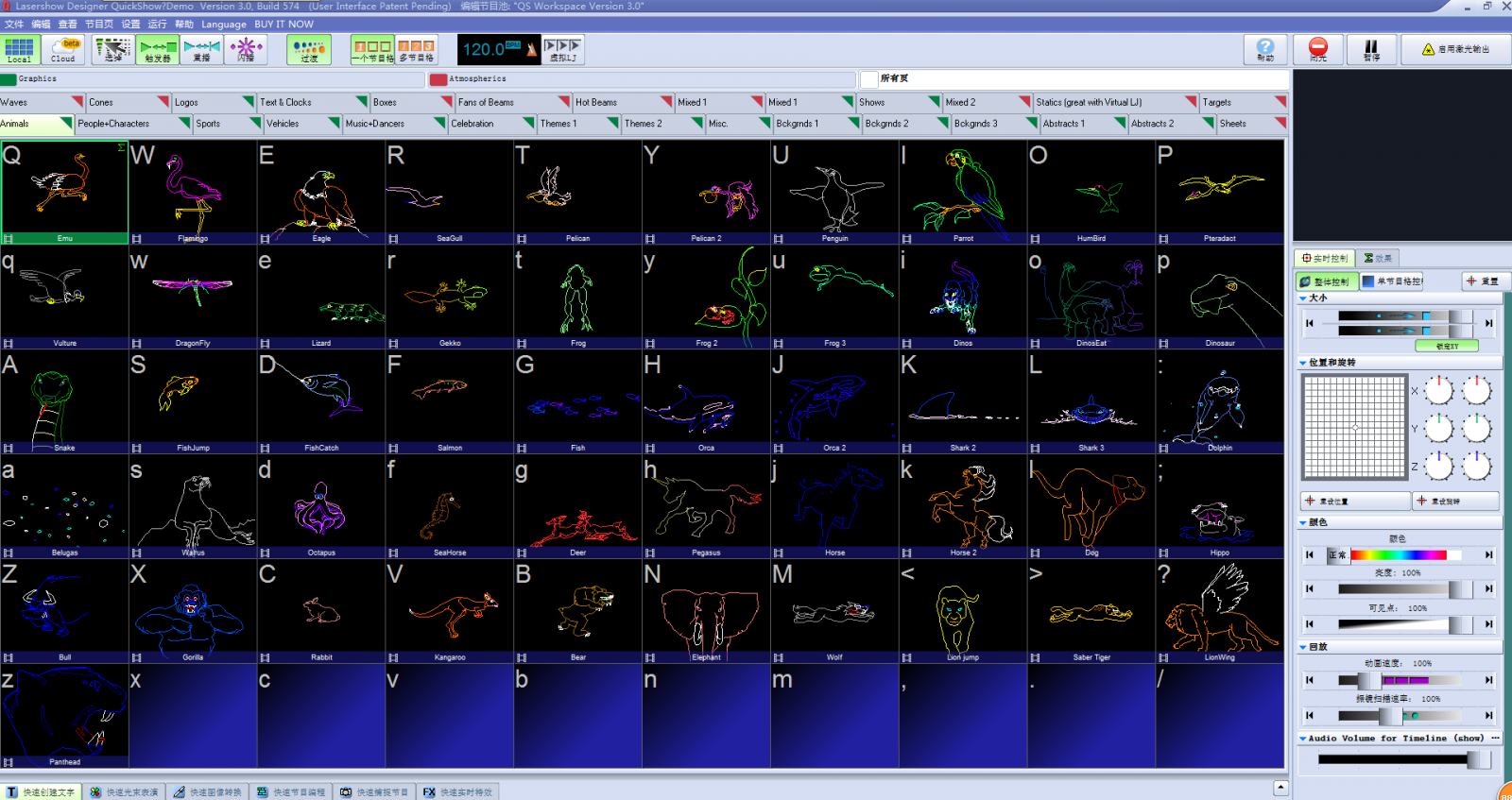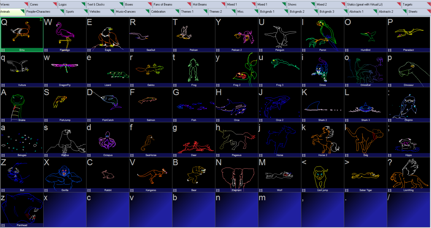 點擊節(jié)目格或按下鍵盤對應(yīng)的字母可以立即把對應(yīng)的節(jié)目輸出到激光。