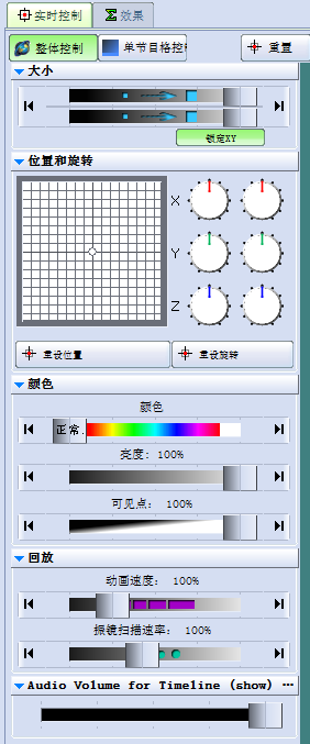 "實時控制(Live Control)"標簽作用于整個激光輸出(所有節(jié)目和軌道)“效果(Effect)”標簽即只影響當前選定的節(jié)目。