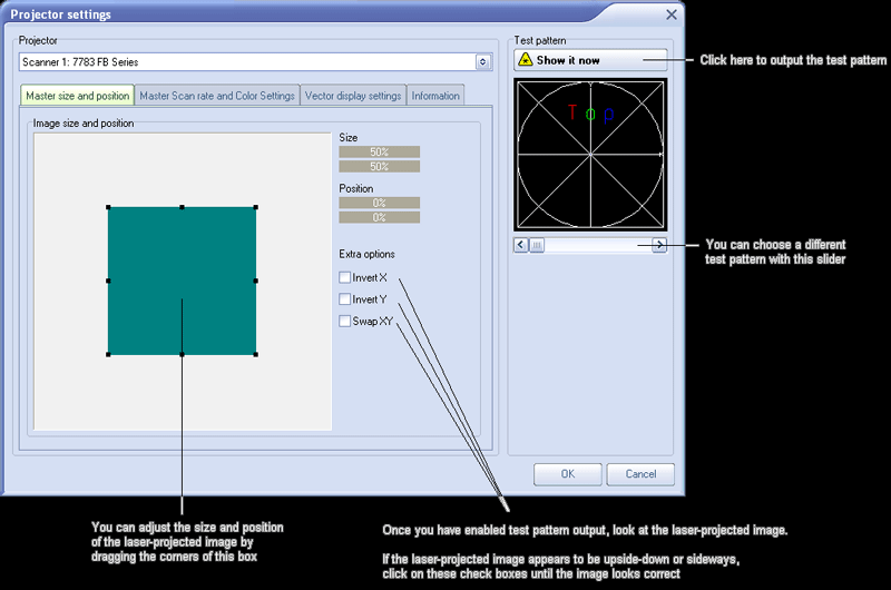 你可很方便地設(shè)置Quickshow與你的激光燈和投影屏幕最佳匹配。