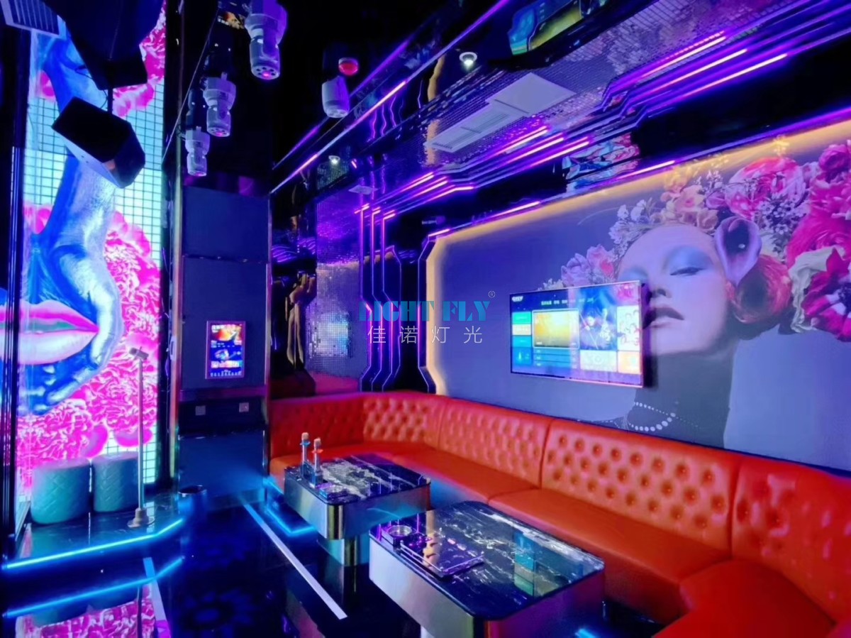 WEGO PARTY-K派對式KTV燈光升級改造由廣州佳諾燈光設備有限公司提供舞臺燈光設備以及調(diào)試與安裝服務。采用佳諾燈光LIGHT FLY高端KTV包房燈光系列,主要設備:嵌入式LED搖頭激光燈,嵌入式LED搖頭圖案燈,嵌入式動畫激光燈,嵌入式LED蝴蝶燈等燈光控制臺設備,全部嵌入式燈光設計讓整個包房空間看起來高端大氣,美輪美奐的燈光秀讓每位客戶仿佛置身一場夢幻燈光中,廣州佳諾燈光設備有限公司是一家十二年從事智能化演藝燈光研發(fā)、生產(chǎn)、銷售、服務于一體的國家高新技術企業(yè)。其自主品牌【佳諾燈光LIGHT FLY】產(chǎn)品涵蓋專業(yè)舞臺燈光、LED演藝照明,文旅亮化等領域,廣泛應用于劇院、體育場館、電視臺及各種演出場所。