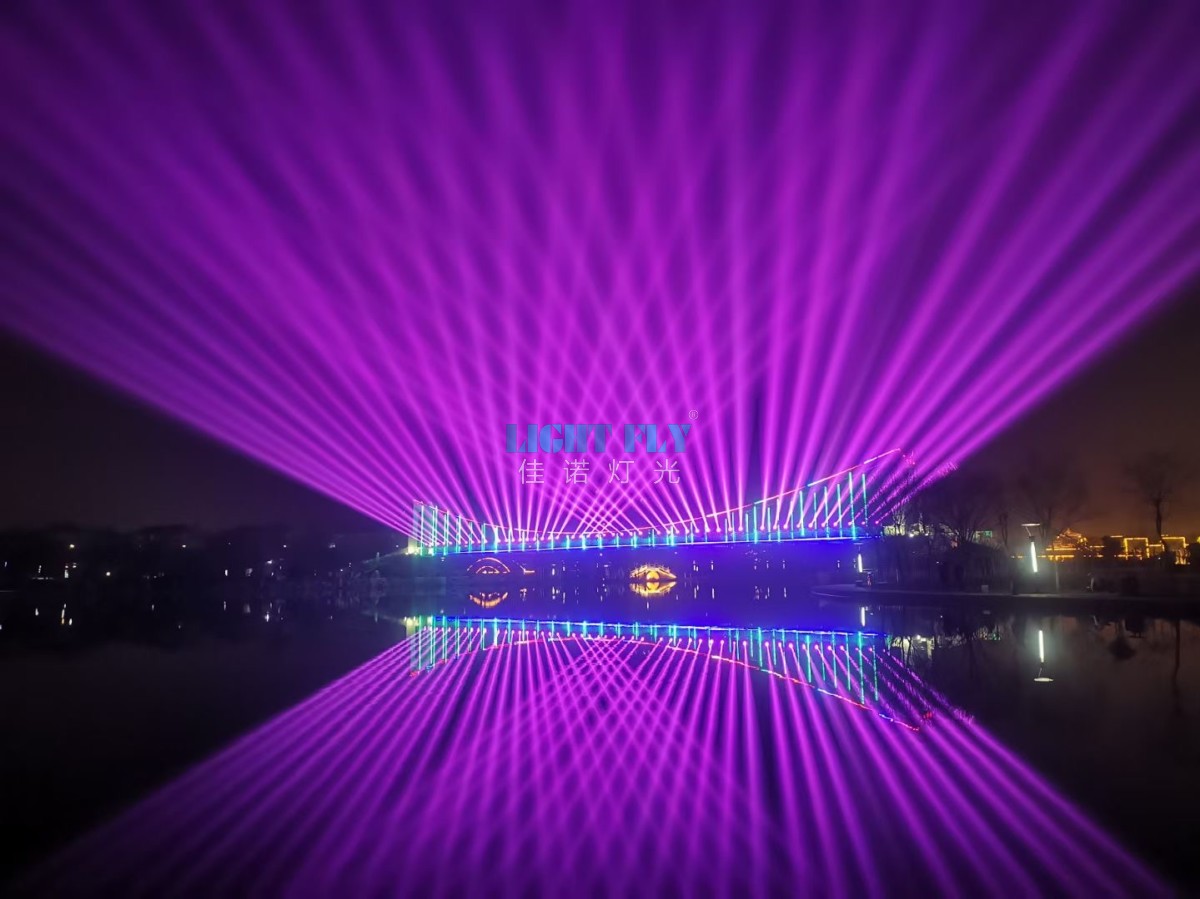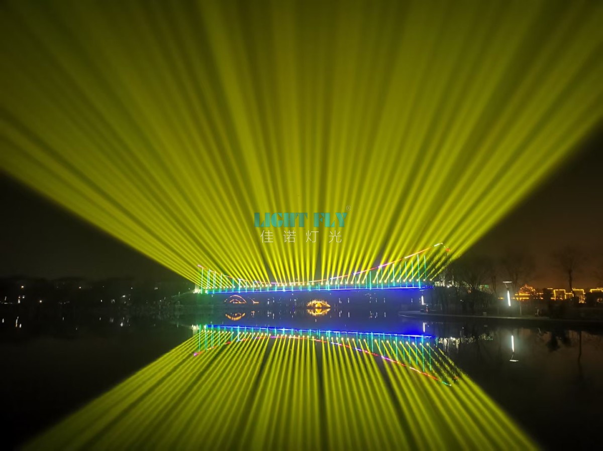 四臺80W全彩地標激光燈與50臺380W防水光束燈點亮了西橋古鎮(zhèn)夜晚的燈光秀,燈光師采用MA2控制臺來編程光束燈,美輪美奐的棱鏡效果與絢麗的激光秀得到了游客們的喜歡,都紛紛拍照留念,廣州佳諾燈光設備有限公司是一家十二年從事智能化演藝燈光研發(fā)、生產(chǎn)、銷售、服務于一體的國家高新技術企業(yè)。其自主品牌【佳諾燈光LIGHT FLY】產(chǎn)品涵蓋專業(yè)舞臺燈光、LED演藝照明,文旅亮化等領域,廣泛應用于劇院、體育場館、電視臺及各種演出場所。