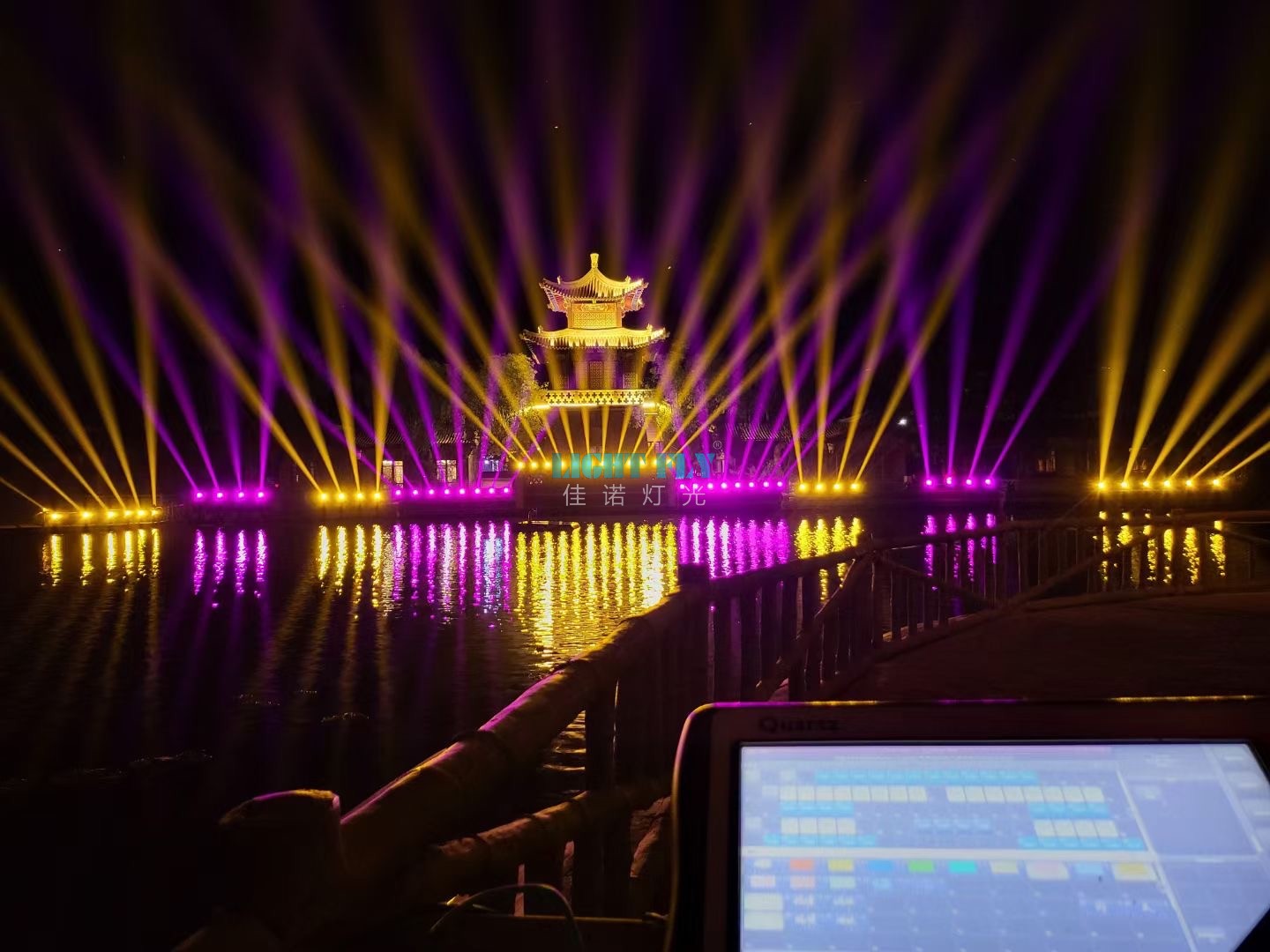 這里是隴西人的后花園——雙龍口。雙龍口位于縣城西北郊渭河與西河交匯處,古曰“雙龍相匯”,“雙龍口”由此得名。2022年景區(qū)準(zhǔn)備打造全新的網(wǎng)紅夜游燈光秀,佳諾燈光LIGHT FLY設(shè)計(jì)部參與了本次夜游燈光方案,主要設(shè)計(jì)了主流的480W防水光束燈圍繞景區(qū)河邊,整整齊齊打造兩邊光束效果,防水光束燈自帶的七彩光束感與棱鏡效果,讓整個(gè)景區(qū)夜晚出現(xiàn)無與倫比的光束燈光秀,得到了景區(qū)游客紛紛拍照留念,廣州佳諾燈光設(shè)備有限公司是一家十五年從事智能化演藝燈光研發(fā)、生產(chǎn)、銷售、服務(wù)于一體的國家高新技術(shù)企業(yè)。其自主品牌【佳諾燈光LIGHT FLY】產(chǎn)品涵蓋專業(yè)舞臺(tái)燈光、LED演藝照明,文旅亮化等領(lǐng)域,廣泛應(yīng)用于劇院、體育場館、電視臺(tái)及各種演出場所。