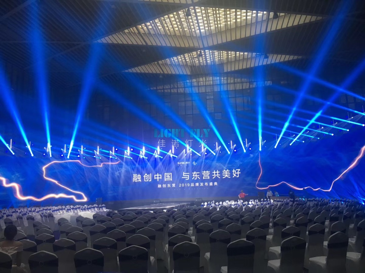佳諾燈光LIGHT FLY88臺全新智能FLY-380B 380W光束燈,120臺防水FLY-1810L LED染色燈,四眼LED觀眾燈等燈光助陣發(fā)布會.廣州佳諾燈光設備有限公司是一家致力于智能舞臺燈光設備的廠家,十二年專業(yè)從事智能舞臺燈光、戶外文旅演藝燈光,娛樂演繹燈光等特殊照明產品。為客戶提供安裝,設計,調試一站式解決方案,案例遍布國內外眾多場所。