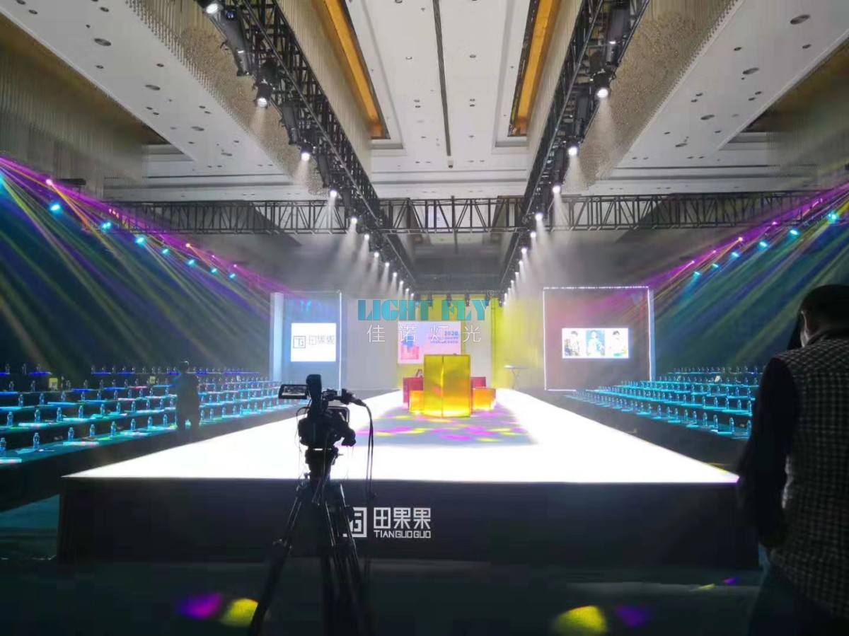 佳諾燈光LIGHT FLY為2019年田·果果秋季新品發(fā)布會(huì)提供全新LED智能燈光-節(jié)能FLY-300T 200W影視LED成像燈,F(xiàn)LY-380B 青龍款380W光束燈打造夢(mèng)幻光束效果與七彩棱鏡效果,F(xiàn)LY-2410L 防水LED染色帕燈等燈光控制臺(tái)設(shè)備。廣州佳諾燈光設(shè)備有限公司配備十二年專業(yè)舞臺(tái)燈光設(shè)備產(chǎn)品研發(fā),生產(chǎn),銷售,舞美設(shè)計(jì),以及安裝調(diào)試為一體全方位服務(wù),以“專業(yè)鑄造精品,創(chuàng)新引領(lǐng)潮流”為宗旨為需要舞臺(tái)燈光設(shè)備的您們提供高品質(zhì)性價(jià)比的產(chǎn)品與服務(wù)。