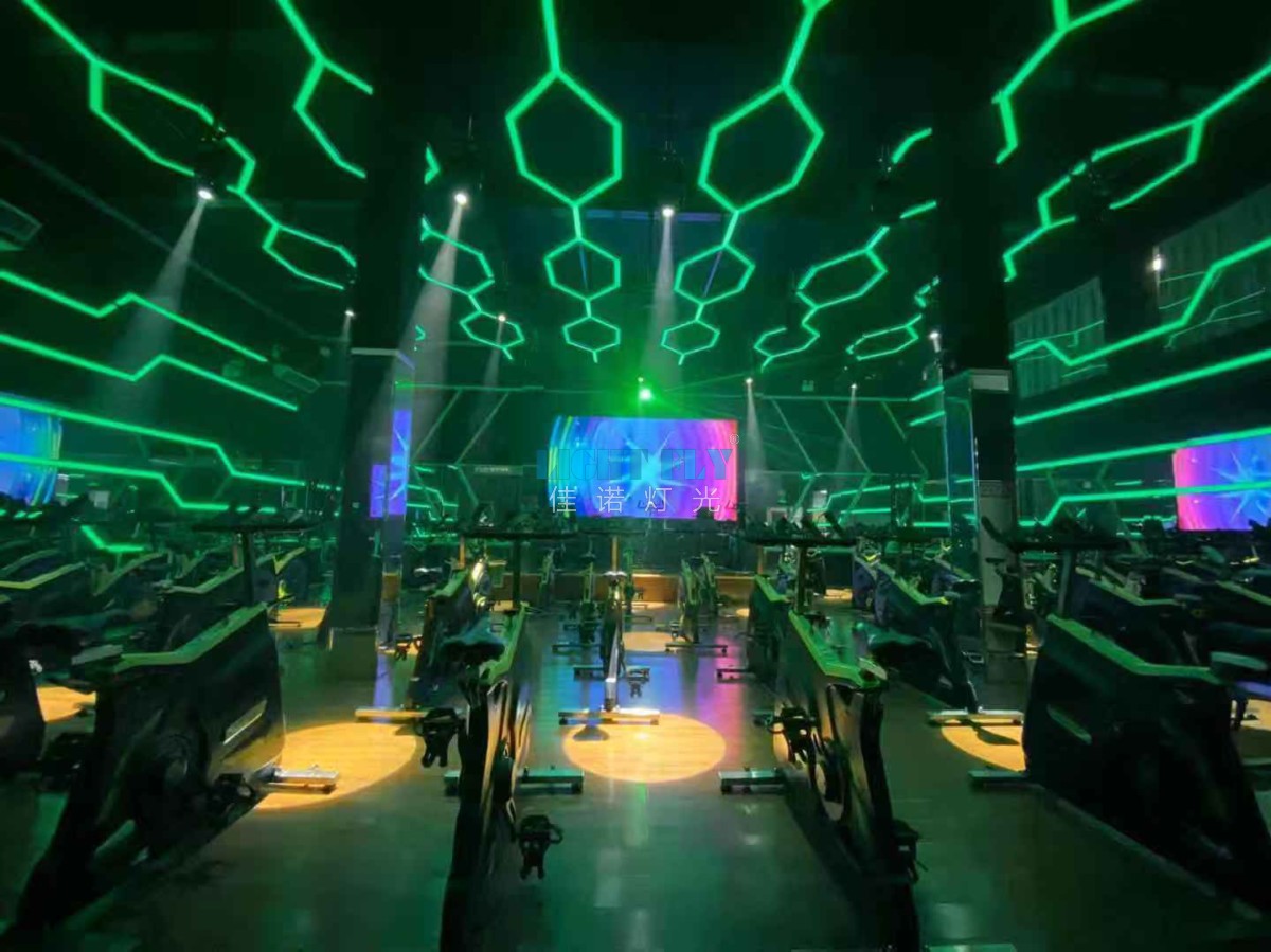 近幾年健身行業(yè)尤為繁華,隨著安康生活理念日益不得人心,許多人也將健身視為生活的一部分,馬甲線與八塊腹肌成為許多人的追求。那么每次去健身的時候,你留意過健身房燈光了么?很多朋友都會反應(yīng),健身房燈光太刺眼,有些健身項目的燈光并不是太合適,那么怎樣裝好一個恰到好處的健身房燈光呢?單車室:用燈光引發(fā)激情磅礴動感單車空間的設(shè)計:能夠采用聲控以及互動的控制系統(tǒng)使得運動、音樂、燈光有機結(jié)合,用燈光效果帶動單車空間的激情氣氛;佳諾燈光LIGHT FLY搭配了一套智能健身房燈光系統(tǒng):100W搖頭LED光束燈,100W搖頭LED圖案燈,LED全彩燈帶,2W動畫激光燈,LED面光燈,麥爵士軟件一套,智能燈光系統(tǒng)一套,薄霧機等燈光控制臺,打造一個全新的節(jié)能健身房燈光秀,炫酷的燈光效果讓每位健身達人更加精力充沛。