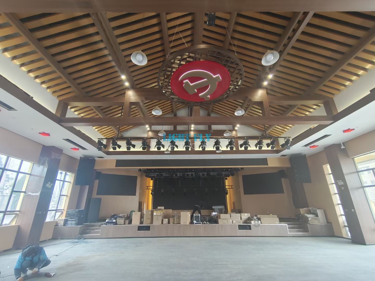 2023年一月份整個文化園多功能會議室升級改造,燈光,音響,顯示屏等全面升級,佳諾燈光LIGHT FLY主要設計了多功能會議室舞臺燈光,采用了380W光束燈24臺,LED染色帕燈60臺,LED三基色會議燈32臺,LED面光燈20臺,煙霧機兩臺等燈光控制臺設備,集合了會議室燈光功能,演出表演燈光功能,絢麗的燈光秀得到了領導們一致滿意,廣州佳諾燈光設備有限公司是一家十五年從事智能化演藝燈光研發(fā)、生產(chǎn)、銷售、服務于一體的國家高新技術企業(yè)。其自主品牌【佳諾燈光LIGHT FLY】產(chǎn)品涵蓋專業(yè)舞臺燈光、LED演藝照明,文旅亮化等領域,廣泛應用于劇院、體育場館、電視臺及各種演出場所。