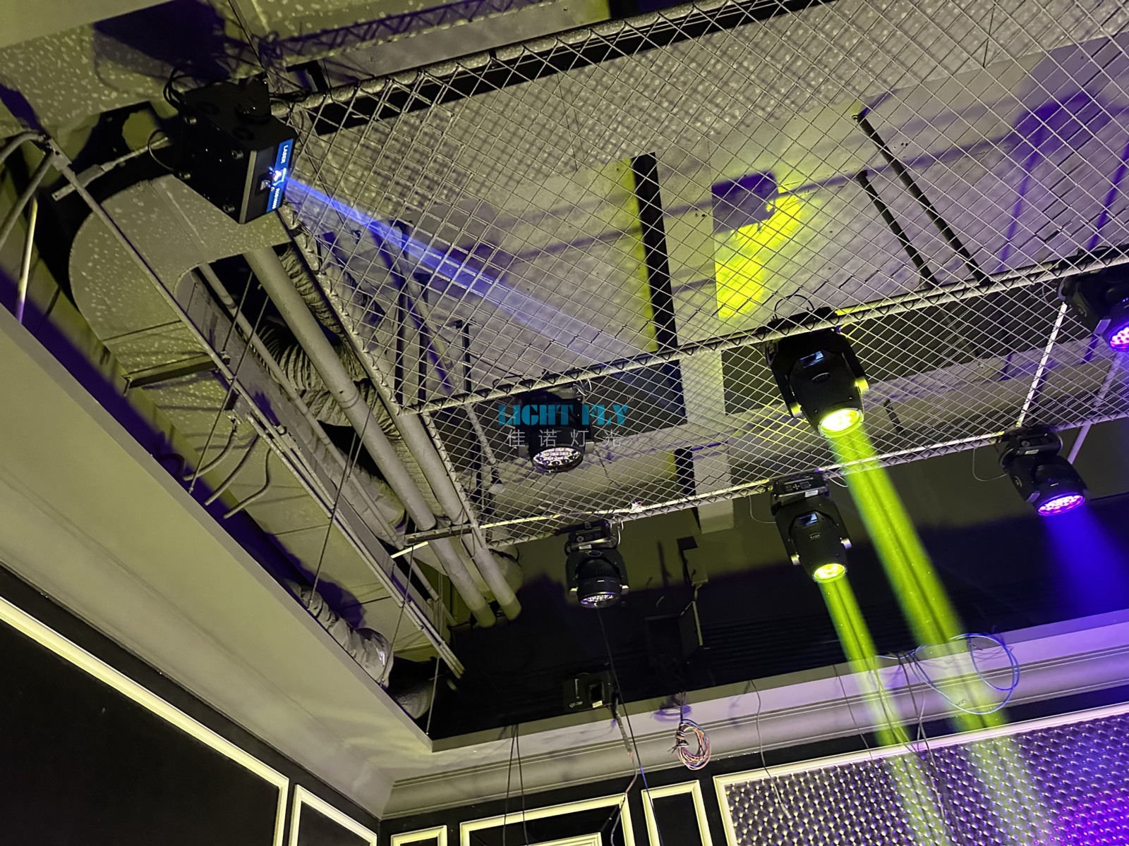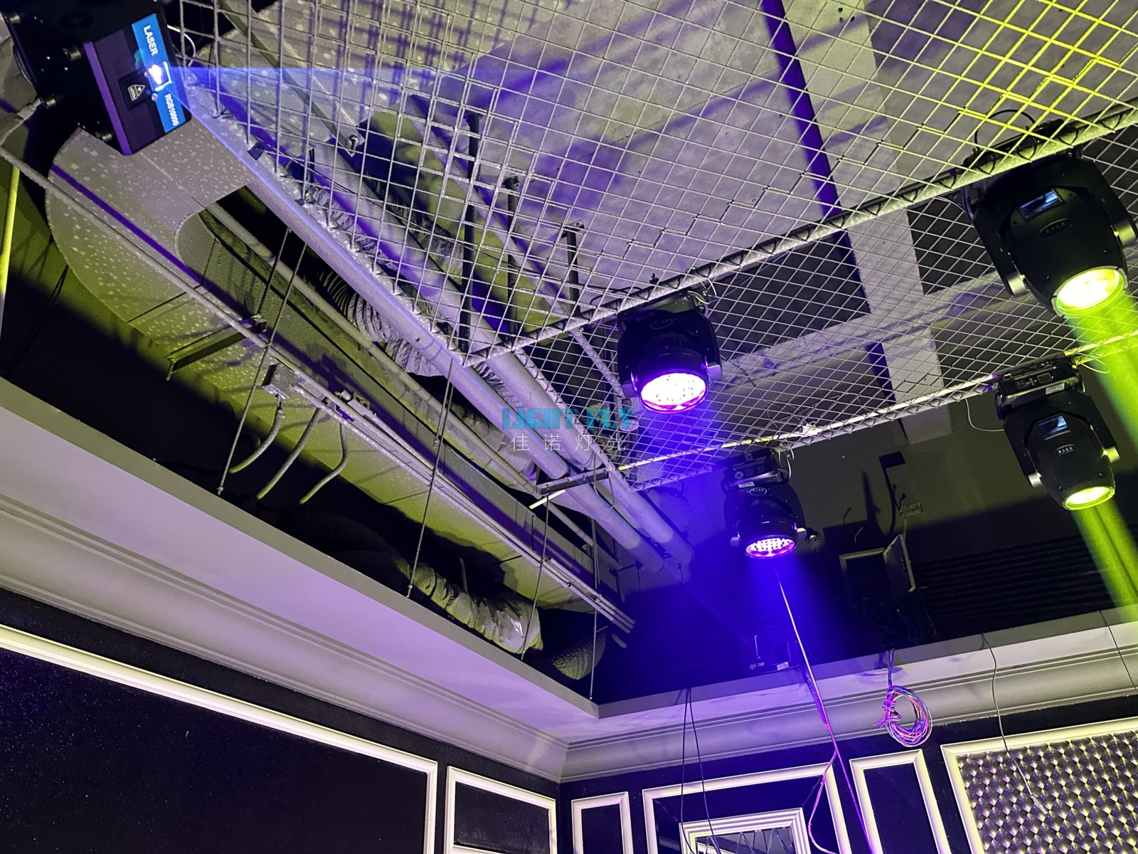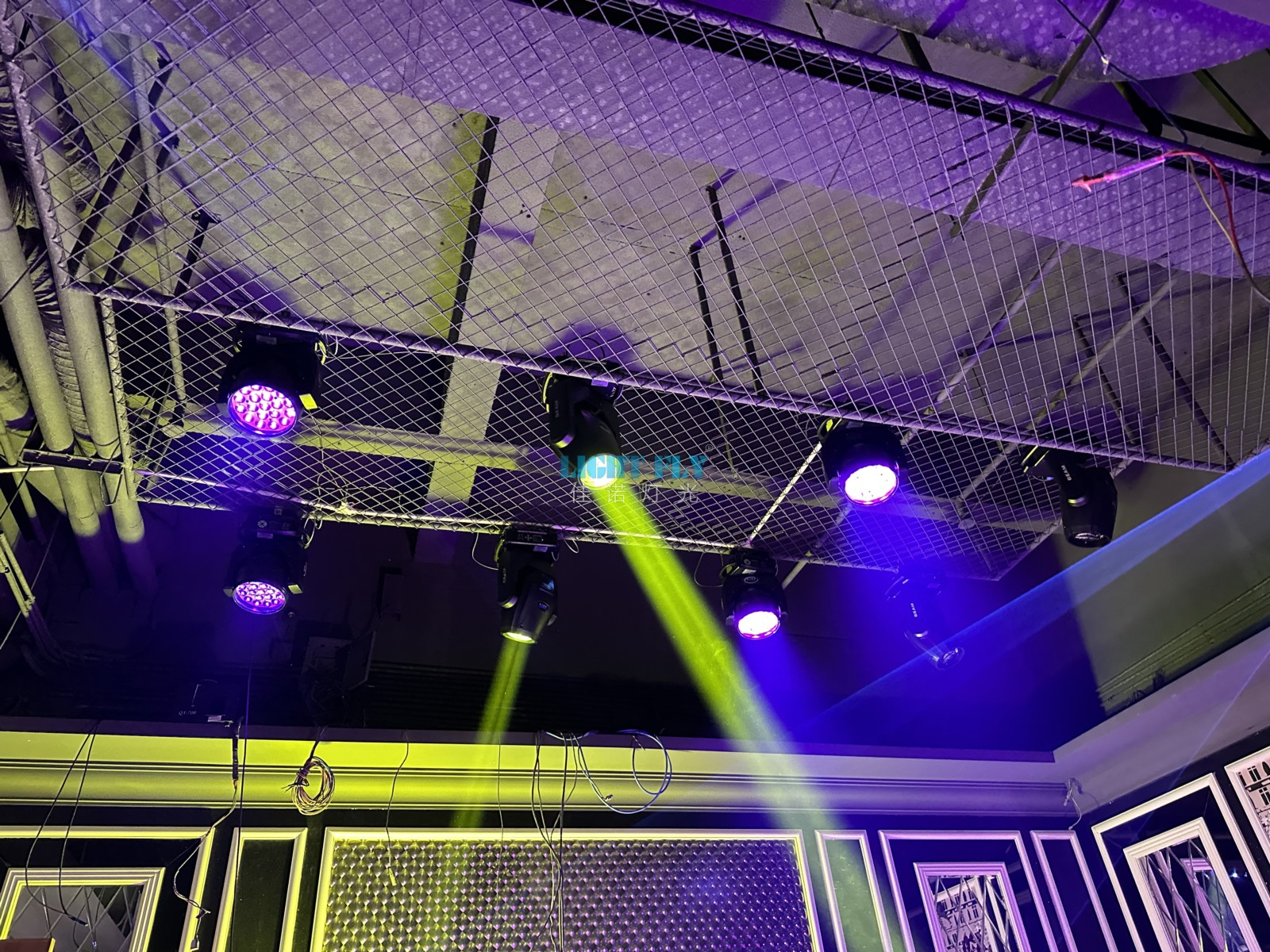 中山純K分店2023年全新改造KTV智能包房燈光秀,采用專業(yè)佳諾燈光LIGHT FLY光束燈,LED搖頭燈染色燈,全彩激光燈通過智能燈光控制臺(tái)一鍵控制,替代了傳統(tǒng)小功率嵌入式LED搖頭燈,LED光束燈,更高的亮度,更佳七彩染色效果讓整個(gè)包間達(dá)到了低空酒吧燈光秀效果,配合音響讓客戶如置身酒吧氛圍,全新的包房燈光效果,得到了客戶與領(lǐng)導(dǎo)的一致滿意。